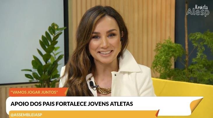 Na estreia do programa, a apresentadora recebeu convidados para um bate-papo sobre esporte, saúde e sociedade. (Reprodução/TV Alesp)