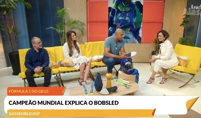 O atleta olímpico e campeão mundial de bobsled Edson Bindilatti explicou no programa como funciona a modalidade. (Reprodução/TV Alesp)